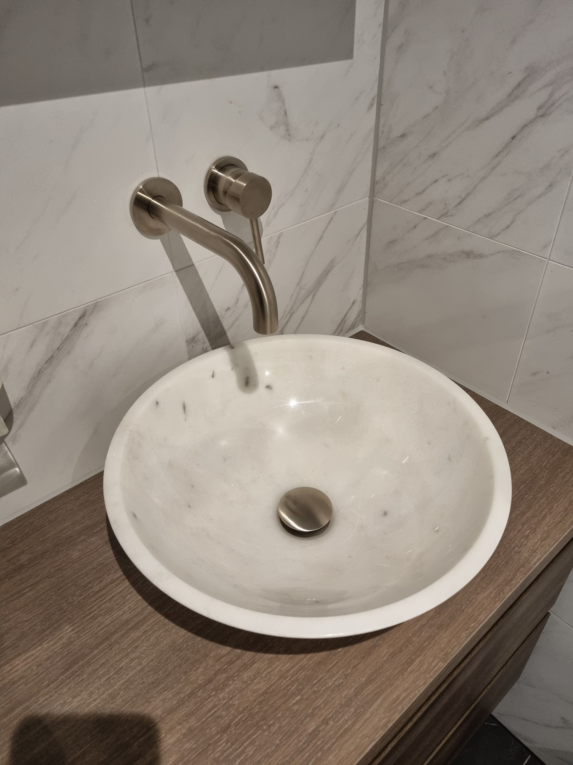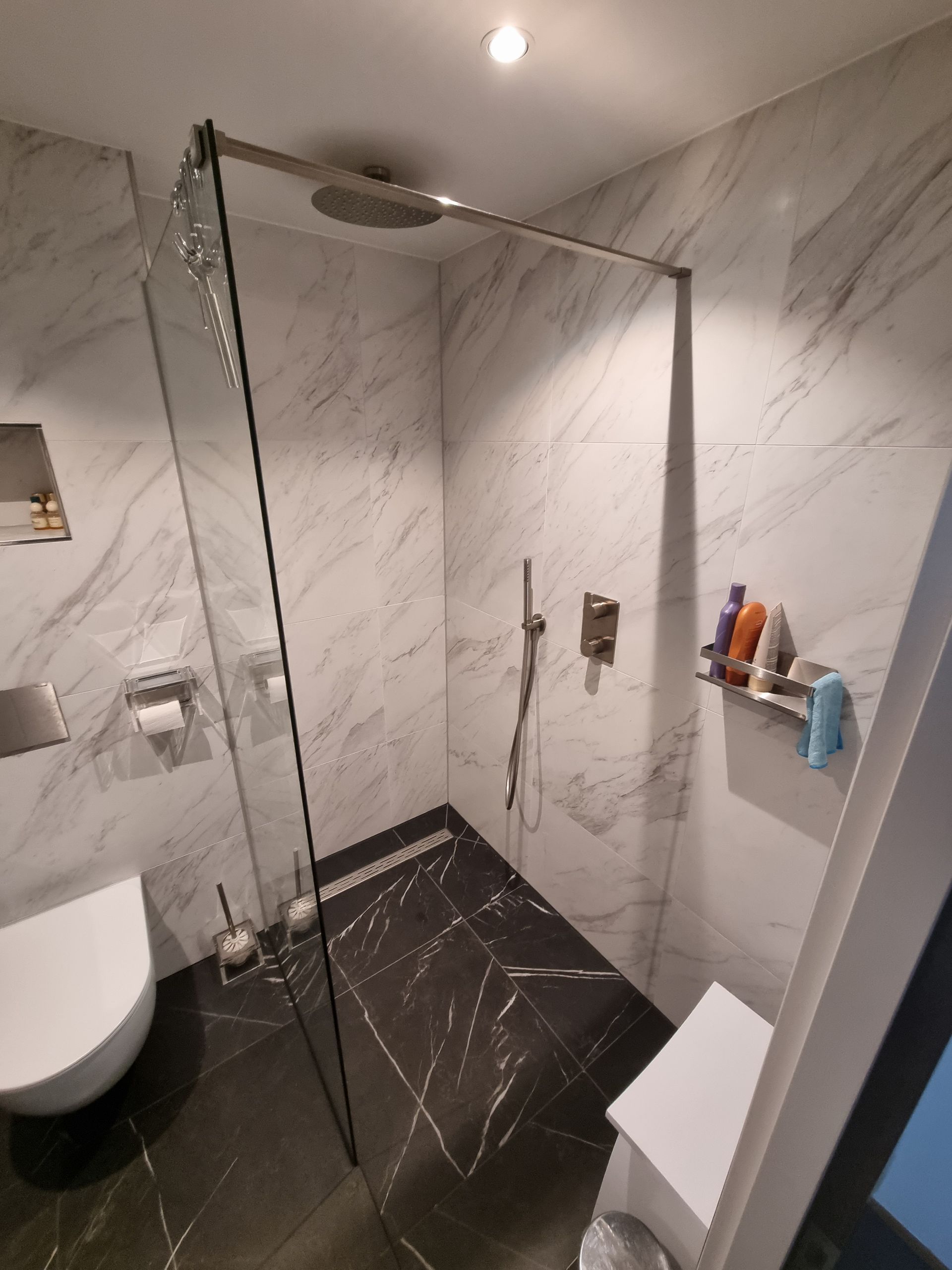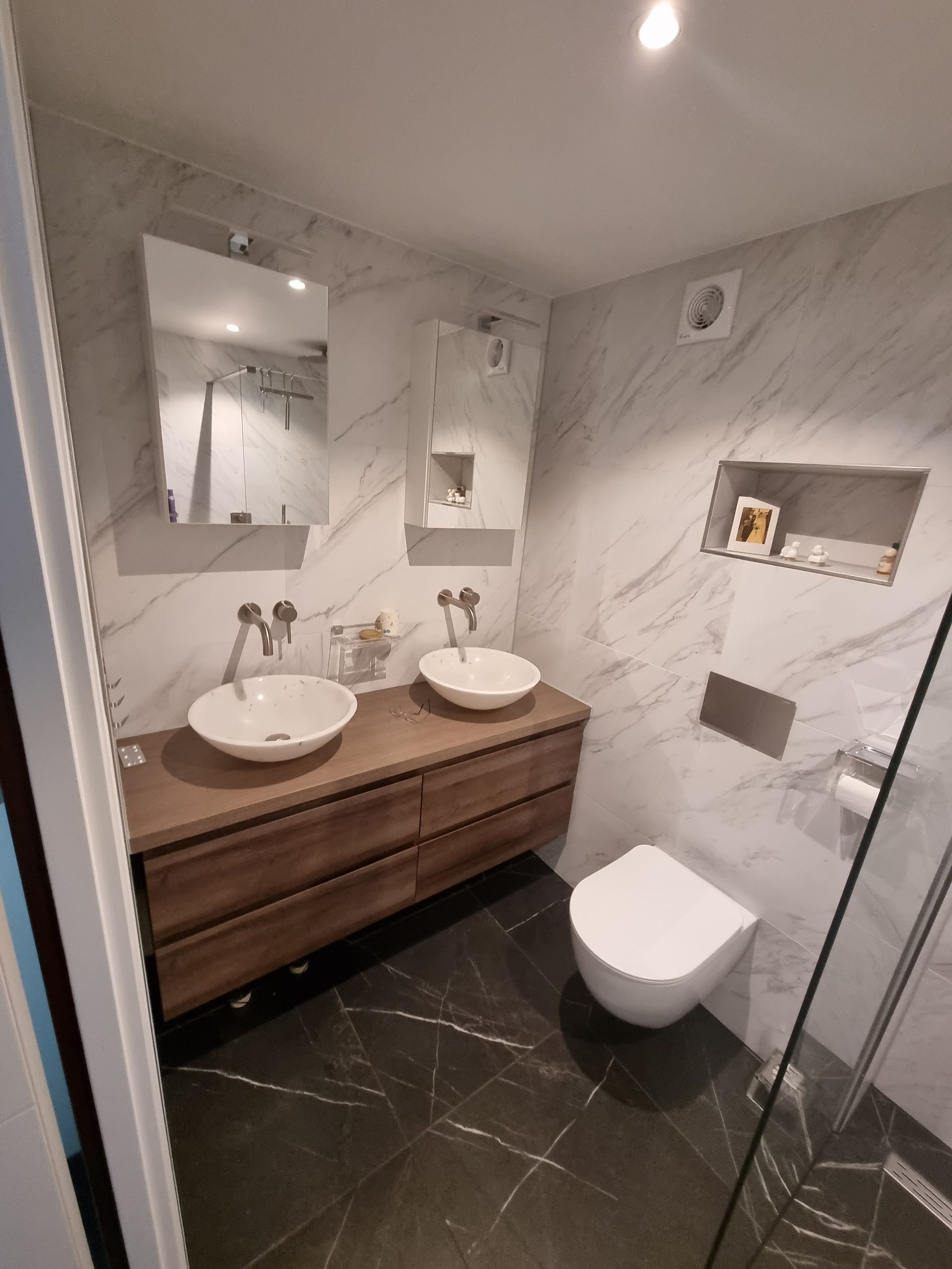 Badkamer verbouwd in Marmerlook in Wormer